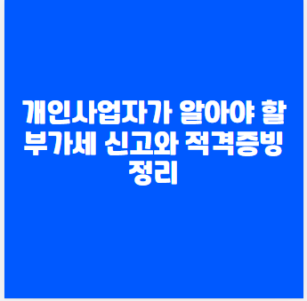 개인사업자의 부가세 신고기간과 적격증빙에 대한 완벽한 가이드입니다. 일반과세자와 간이과세자의 신고 일정, 부가세 계산법, 적격증빙의 종류와 중요성, 그리고 세금 신고 시 주의사항까지 상세히 알려드립니다. 사업자로서 세금 부담을 줄이고 효율적인 세무 관리를 위한 필수 정보를 확인하세요.