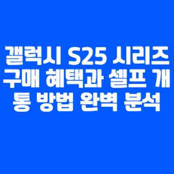 갤럭시 S25 시리즈의 사전예약 혜택과 자급제폰 개통 방법을 알아보세요. 더블 스토리지, 할인 쿠폰 등 다양한 혜택과 함께 셀프 개통으로 통신비를 절약하는 팁도 제공합니다.