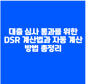 - 신용점수 관리: 신용점수가 높으면 낮은 금리로 대출을 받을 수 있어 DSR 관리에 유리합니다.