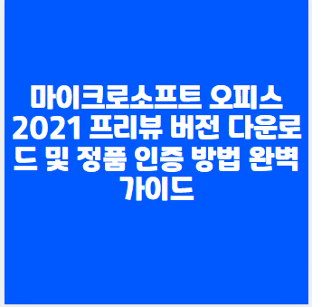 마이크로소프트 오피스 2021 프리뷰 버전을 무료로 다운로드하고 정품 인증하는 방법을 알아보세요. 엑셀, 워드, 파워포인트 등 오피스 제품군을 쉽게 설치하고 KMS 인증으로 정품처럼 사용할 수 있는 완벽 가이드를 제공합니다. 오피스 2021의 새로운 기능과 장점을 미리 체험해보세요.