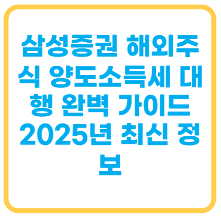 2025년 해외주식 양도소득세 신고, 더 이상 복잡하게 고민하지 마세요. 삼성증권에서 제공하는 무료 양도소득세 대행 신청 서비스를 이용하면 쉽고 정확하게 신고를 마칠 수 있습니다. 본 가이드에서 삼성증권 해외주식 양도소득세 대행 신청 대상, 기간, 방법 및 타사 통합 신고 팁까지 모든 정보를 확인하고 스마트한 투자자로 거듭나세요.