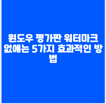 워터마크 제거 방법을 선택할 때는 자신의 기술 수준과 시스템 안정성을 고려하여 적절한 방법을 선택하는 것이 중요합니다. 레지스트리를 수정하거나 시스템 파일을 변경하기 전에는 항상 백업을 만들어 두는 것이 좋습니다.