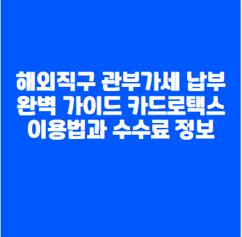 해외직구 시 발생하는 관부가세 납부 방법을 총정리했습니다. 카드로택스를 통한 신용카드, 체크카드 결제 방법과 수수료 정보, 은행 납부 방법까지 자세히 알아보세요. 관세 계산부터 납부까지 필요한 모든 정보를 한 곳에서 확인하실 수 있습니다.