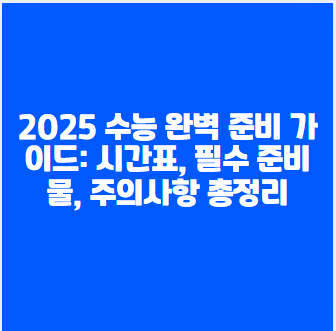 2025학년도 수능을 앞둔 수험생을 위한 완벽 가이드! 시험 시간표, 필수 준비물 목록, 당일 주의사항, 음식 선택 팁, 응시료 환불 방법까지 한 번에 정리했습니다. 수능 당일 놓치지 말아야 할 중요 정보와 컨디션 관리법을 통해 최상의 결과를 얻을 수 있도록 도와드립니다.
