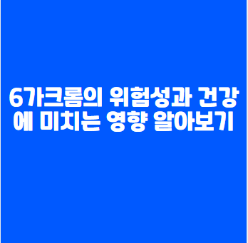 특히 장기간 고농도의 6가크롬에 노출될 경우, 심각한 건강 문제가 발생할 수 있으므로 주의가 필요합니다.